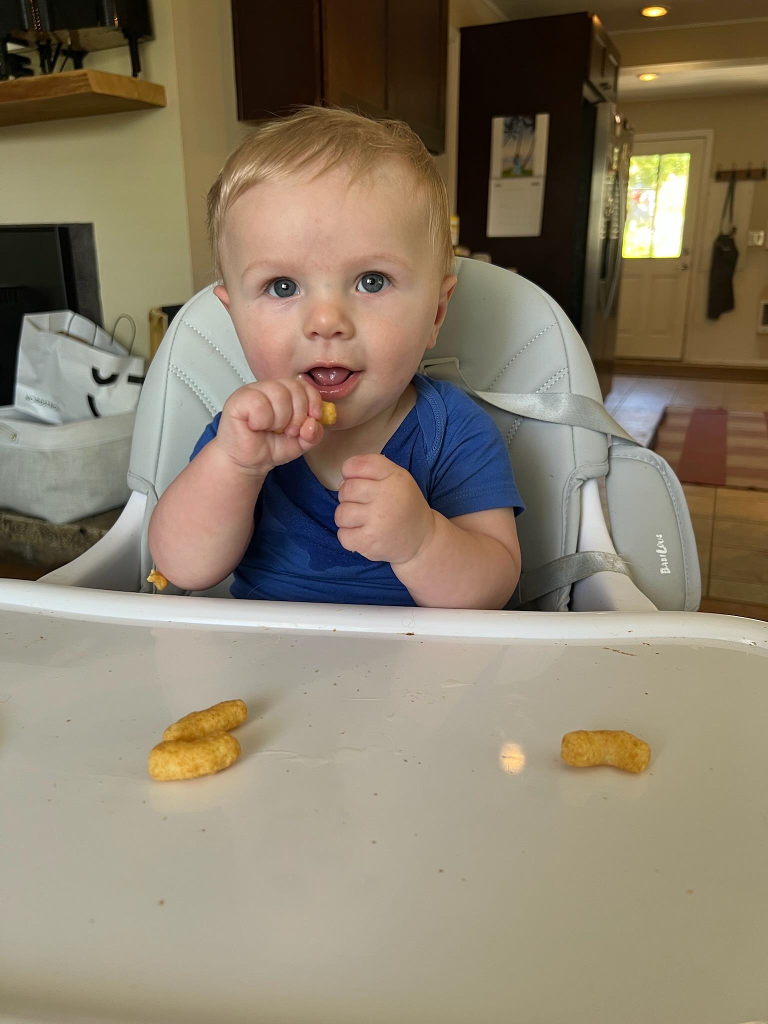 My 8 month-old grandson Calvin was recently introduced to peanut bamba with no adverse reaction and from the look on his face, I think they are a win!